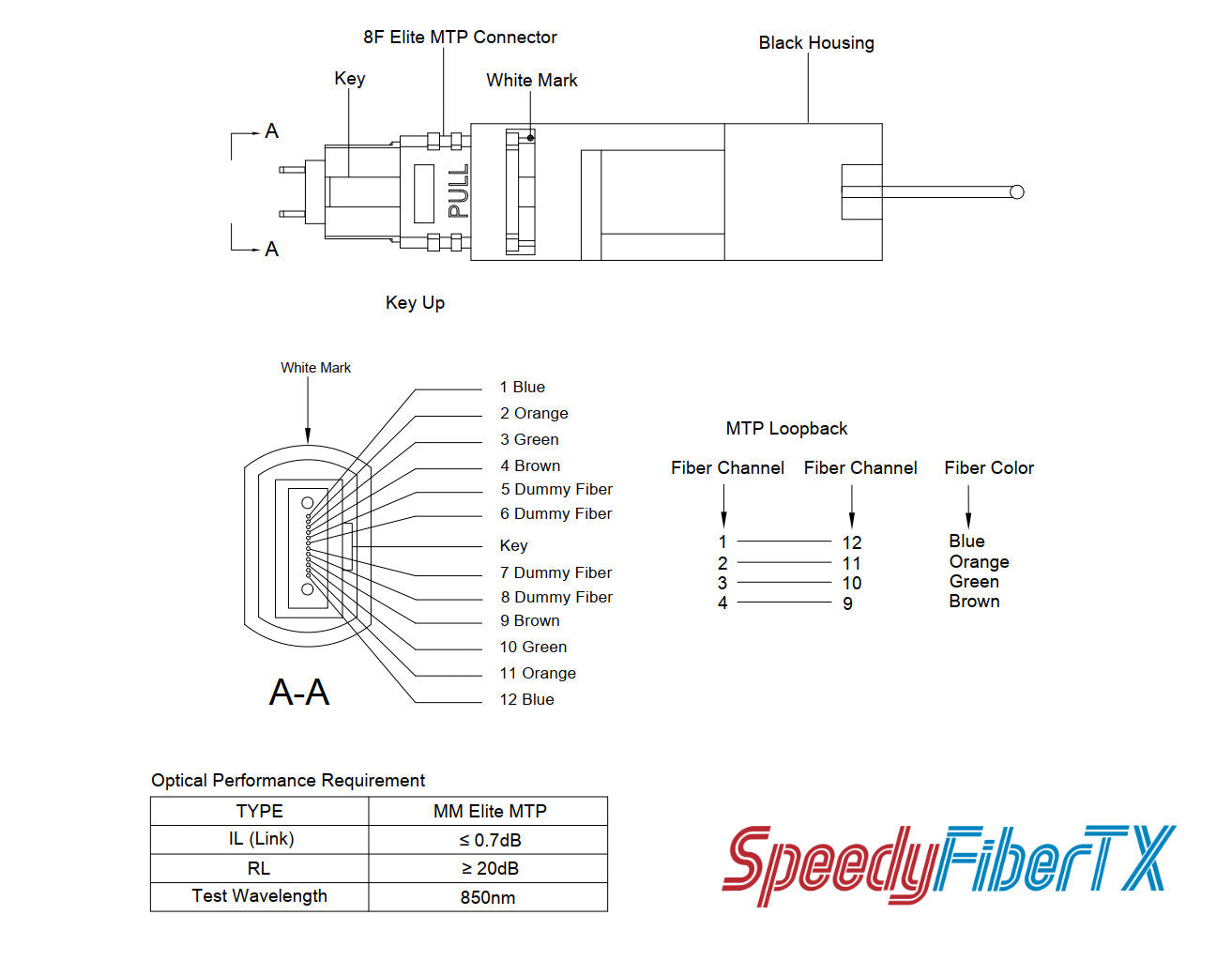 MTP® Loopback modules are used widely within testing environment especially within parallel optics 40G networks. It can be used with MTP cables to detect the quality of each channel and self-loop test of a single MTP interfac transceiver. Loopbacks are built to link Transmitter (TX) and Receivers (RX) positions of MTP® transceivers interfaces. MTP® loopbacks can facilitate and speed up IL testing of optical networks segments by connecting them to MTP® trunks/patch leads.