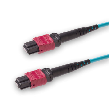 8 芯低插損母頭 MPO/APC 轉母頭 MPO/APC 跳線 | 康寧® ClearCurve® OM4 多模光纖 | 極性B,綠色 MPO-12 接頭,洋紅色外被 | LSZH 低煙無鹵外被