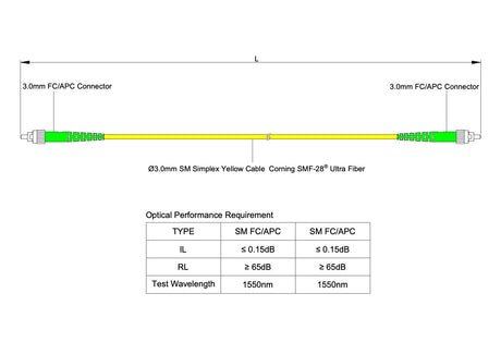 電信級低插損 0.15dB 單模單工 FC/APC to FC/APC 光纖跳線 | 康寧纖芯 | LSZH 低煙無鹵外被