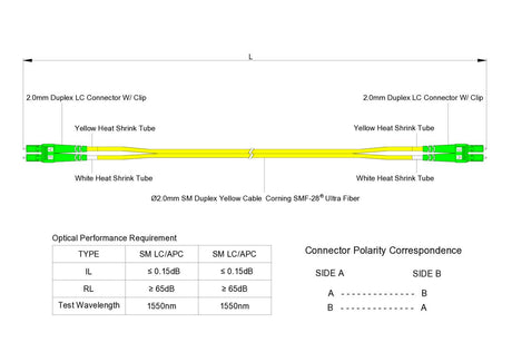 電信級低插損 0.15dB 單模雙工 LC/APC to LC/UPC 光纖跳線 | 康寧纖芯 | LSZH 低煙無鹵外被