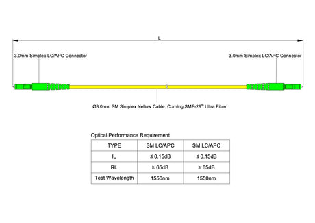 電信級低插損 0.15dB 單模單工 LC/APC to LC/UPC 光纖跳線 | 康寧纖芯 | LSZH 低煙無鹵外被