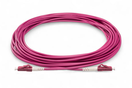 電信級低插損 0.15dB LC/UPC to LC/UPC 多模 OM4 單工光纖跳線 | 康寧纖芯 | 洋紅色 LSZH 低煙無鹵外被, 洋紅色接頭
