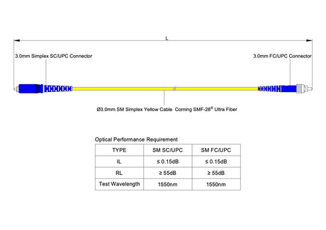 電信級低插損 0.15dB 單模雙工 SC/UPC to FC/UPC 光纖跳線 | 康寧纖芯 | LSZH 低煙無鹵外被