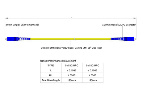 電信級低插損 0.15dB 單模單工 SC/UPC to SC/UPC 光纖跳線 | 康寧纖芯 | LSZH 低煙無鹵外被