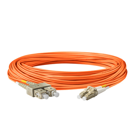 TAA合規 | 電信級 0.2dB LC/UPC to SC/UPC 多模 OM1 雙工光纖跳線 | 康寧纖芯 | 橘色 OFNR 外被