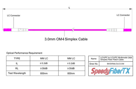TAA合規 | 電信級 0.2dB LC/UPC to LC/UPC 多模 OM4 單工光纖跳線 | 康寧纖芯 | 洋紅色 OFNR 外被, 米色接頭