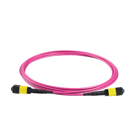 8芯低插損母頭 MPO/APC 轉母頭 MPO/APC 跳線 | 康寧® ClearCurve® OM4 多模光纖 | 極性B,黃色 MPO-12 接頭,洋紅色外被 | LSZH 低煙無鹵外被