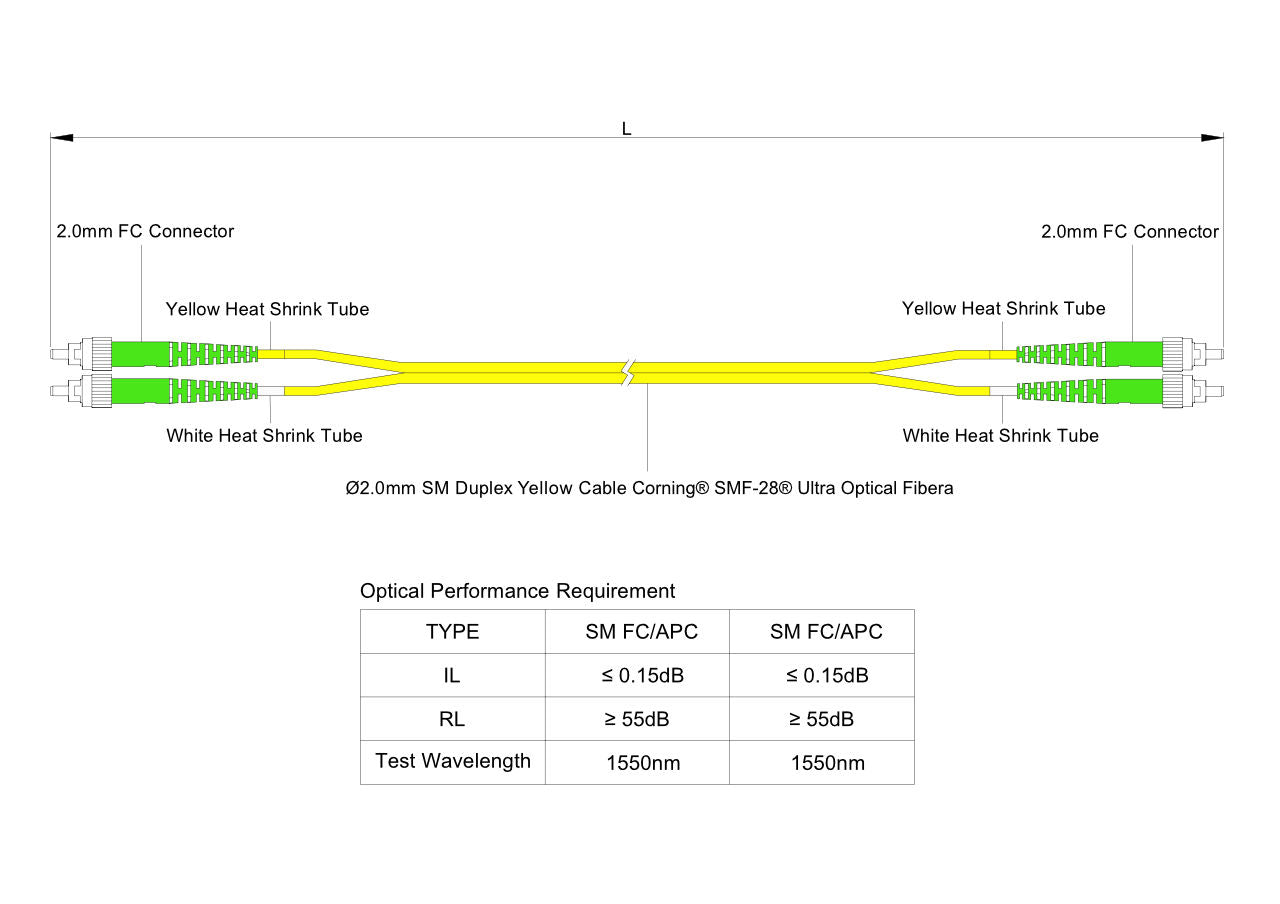 電信級低插損 0.15dB 單模雙工 FC/APC to FC/APC 光纖跳線 | 康寧纖芯 | LSZH 低煙無鹵外被