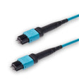 12-Fiber Low Loss Pinned MPO/UPC to Pinned MPO/UPC Jumper | Corning® ClearCurve® OM3 Multimode Optical Fiber | Type A, Aqua MPO Connectors, Aqua Cable Jacket | LSZH Jacket