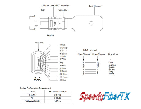 12 Fibers MPO Female Low Loss Multimode Loopback Module