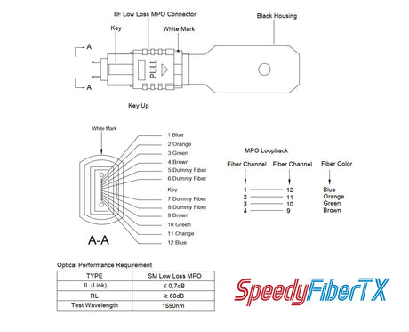 8 Fibers MPO Female Low Loss Single-mode Fiber Loopback Module