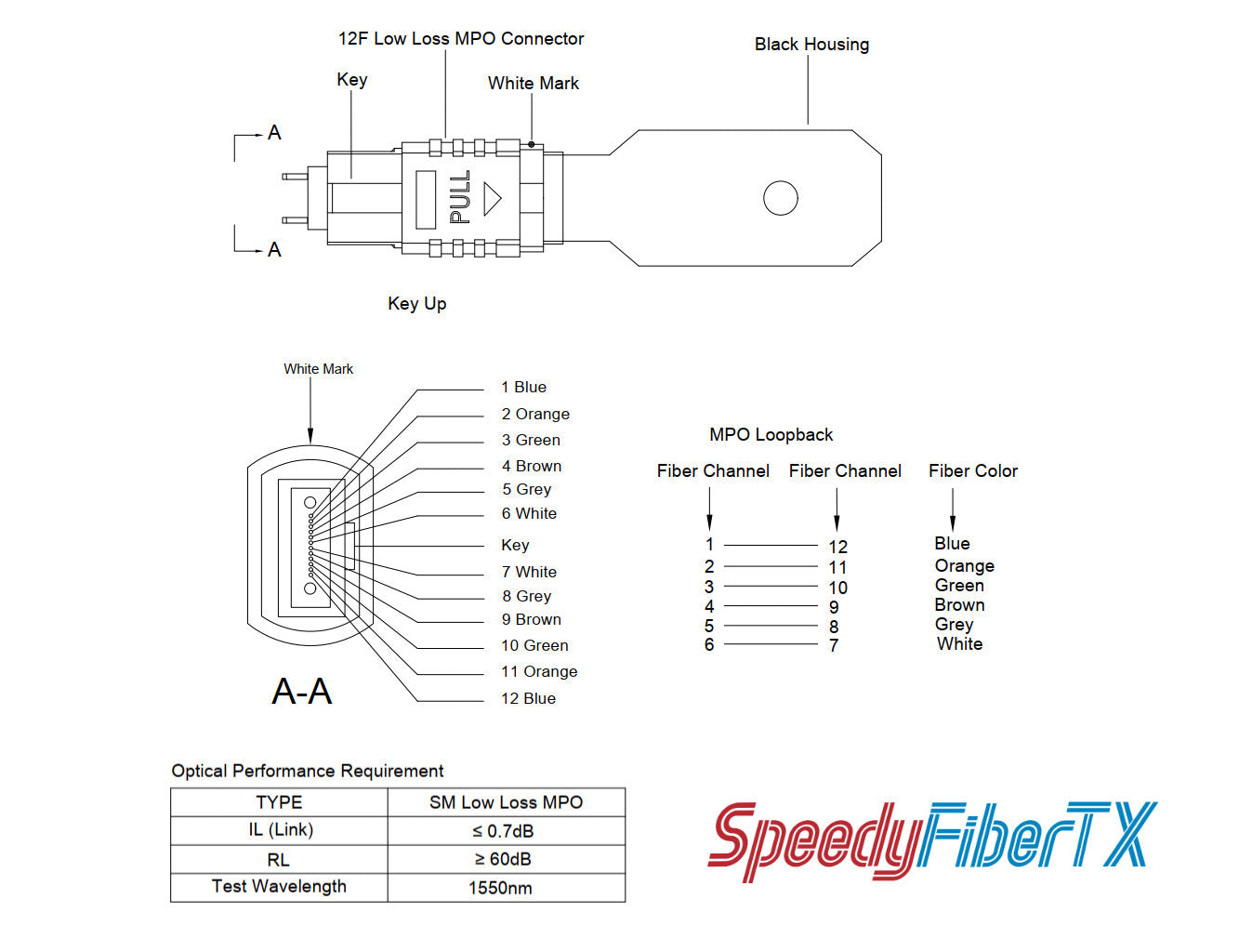 12 Fibers MPO Male Low Loss Single-mode Fiber Loopback Module