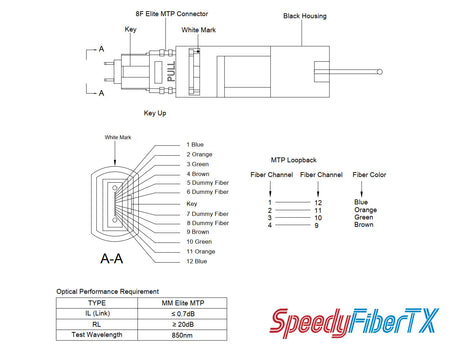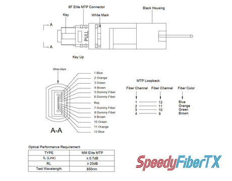 8 Fibers Elite MTP® Female Multimode Fiber Loopback Module