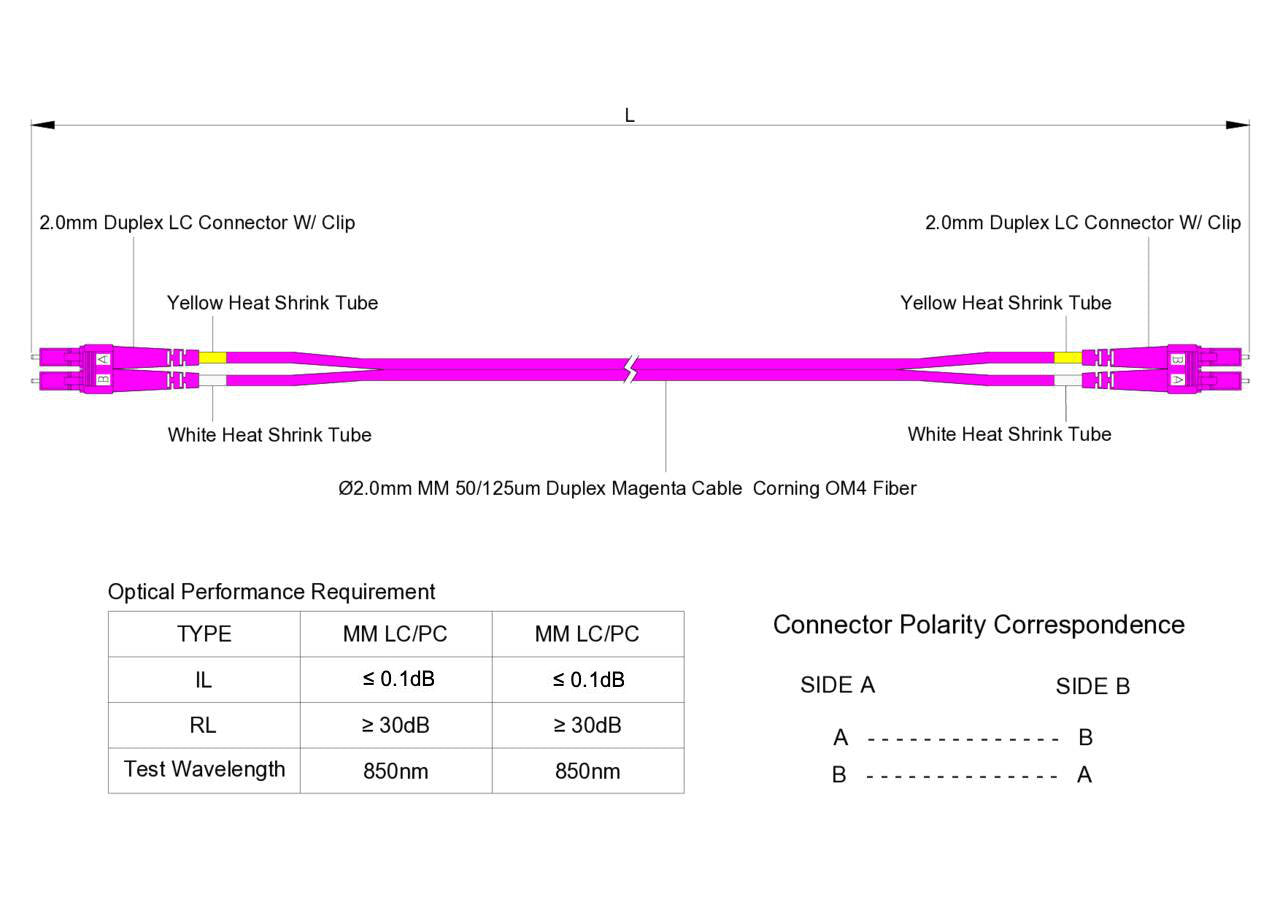 • Cable manufactured with industry-leading Multimode 50/125μm OM4 Corning ClearCurve Optical Fiber | 2.0mm slim zipcord cable jacket with industry standard flammability rating | Durable plug and play high-quality fiber optic connectors