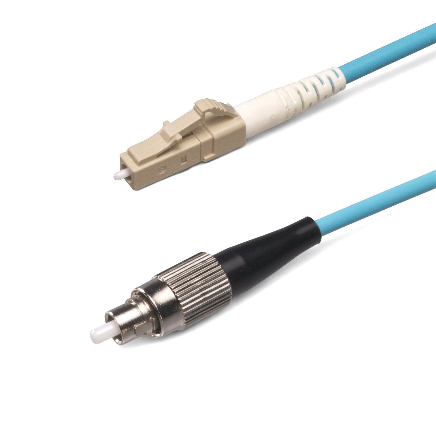 0.2dB LC/UPC to FC/UPC Multimode OM4 Simplex Fiber Patch Cable | Corning ClearCurve OM4 50 µm Laser-Optimized Fiber | Aqua OFNR Jacket, Beige Connectors