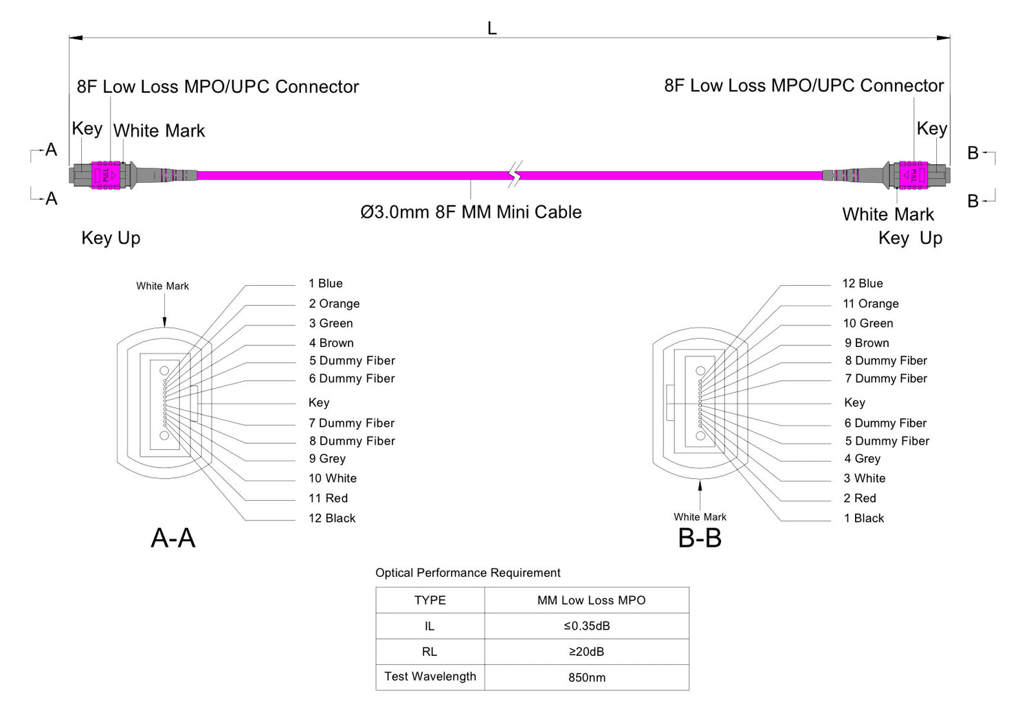 This MPO to MPO jumper enables seamless migration to higher data rates when used with trunk cables, making it ideal for high-density fiber patching within cabinets. Featuring non-pinned UPC connectors with Type B polarity and built with Corning® ClearCurve® OM4 fiber, it offers low insertion loss, high return loss, and reliable performance. Pre-terminated for easy plug-and-play deployment, this cost-effective solution supports 40G/100G multimode transceivers in data center, FTTH, and EPON environments.