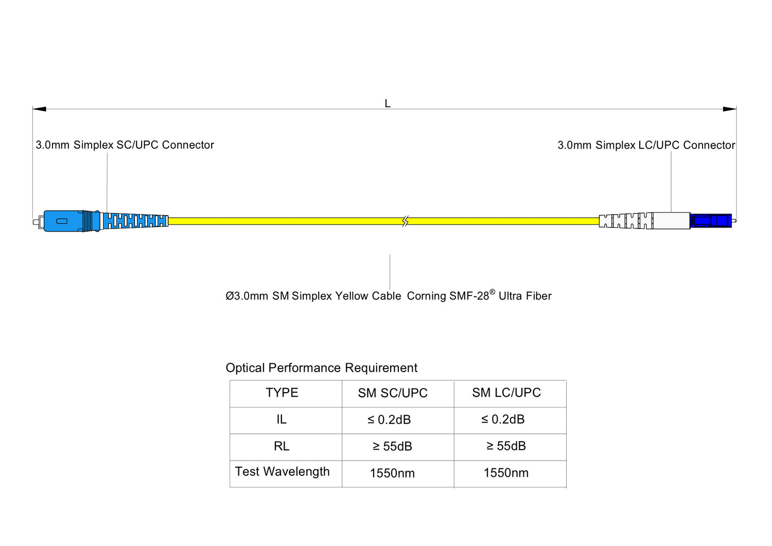 - Cable manufactured with industry-leading Corning SMF-28 Ultra Optical Fiber, OS1/OS2 Compatible, durable high-quality simplex fiber optic connectors and industry standard flammability rating PVC 3.0mm simplex cable jacket