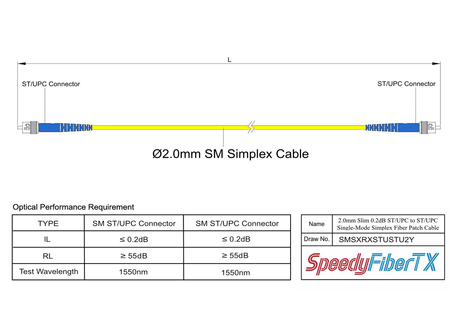 電信級 0.2dB Slim 單模單工 ST/UPC to ST/UPC光纖跳線 | 康寧纖芯 | OFNR 外被