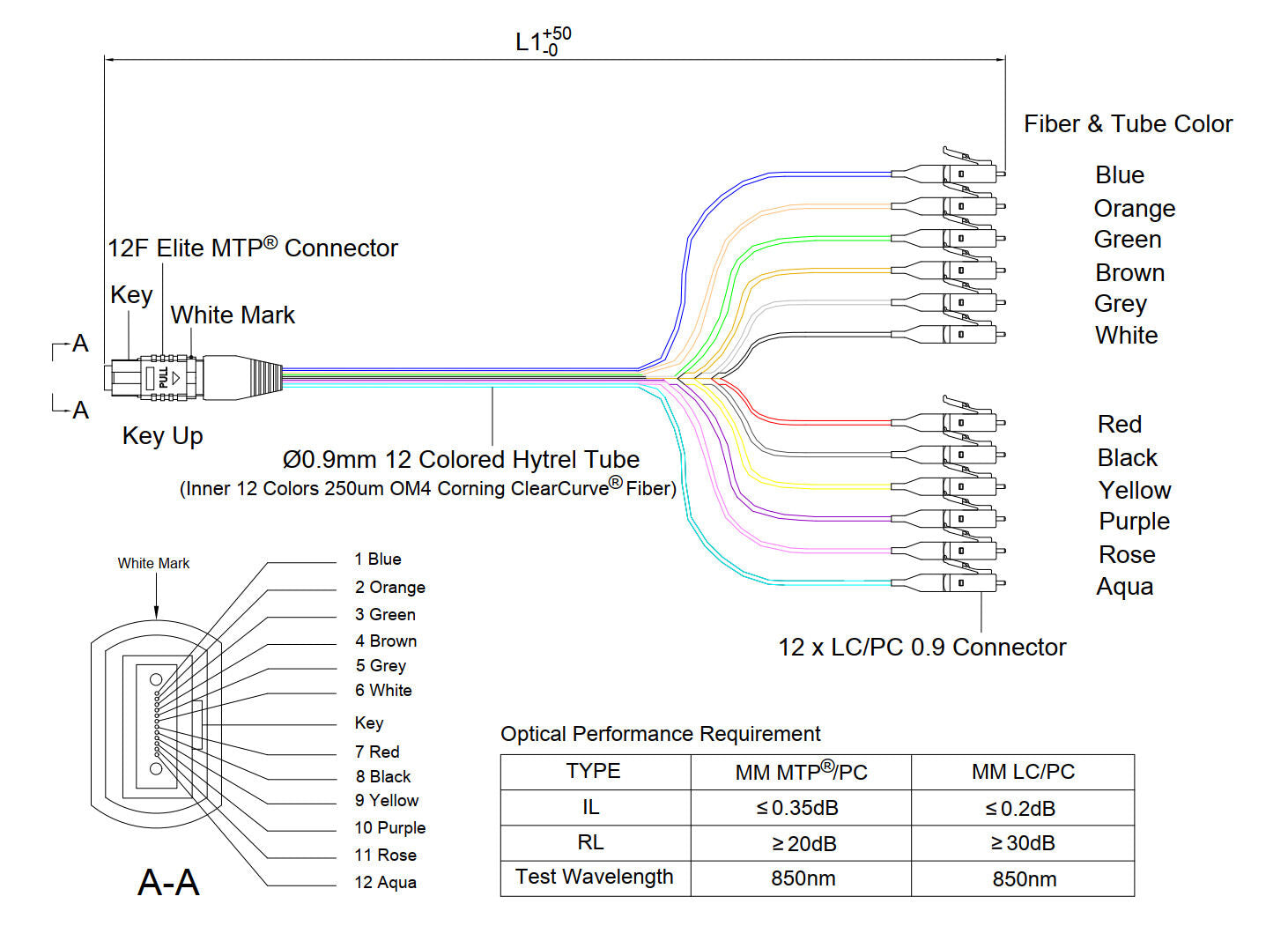 • Premium Fiber & Durability – Built with Corning OM4 ClearCurve® fiber & 900μm 12-colored Hytrel® tube for superior performance.