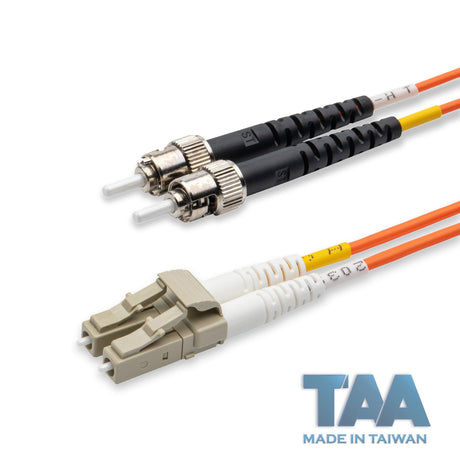TAA合規 | 電信級 0.2dB LC/UPC to ST/UPC 多模 OM1 雙工光纖跳線 | 康寧纖芯 | 橘色 OFNR 外被