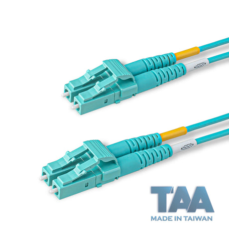 TAA合規 | 電信級 0.2dB LC/UPC to LC/UPC 多模 OM4 雙工光纖跳線 | 康寧纖芯 | 水綠色 OFNR 外被, 水綠色接頭